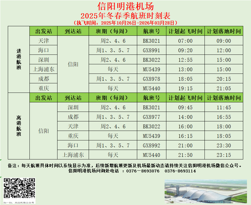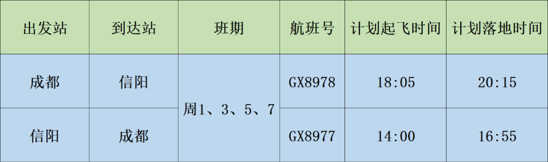 航班换季 | “成都=信阳”等航线将于10月26日执行新时刻