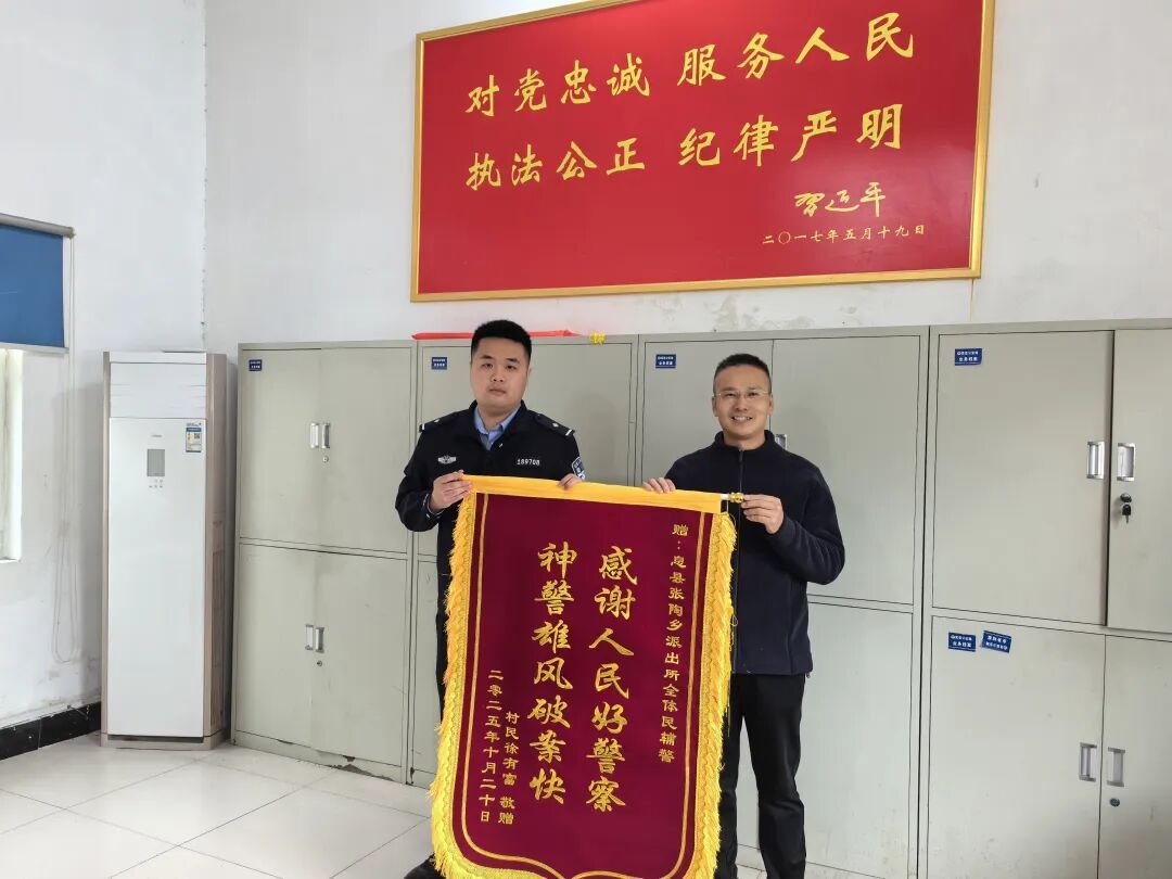 为表达感激之情,徐某于10月20日专程来到派出所,送上印有“感谢人民好警察,神警雄风破案快”字样的锦旗,对民警履职尽责、执法为民的工作作风表示高度赞扬。